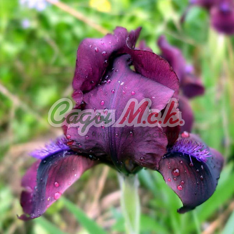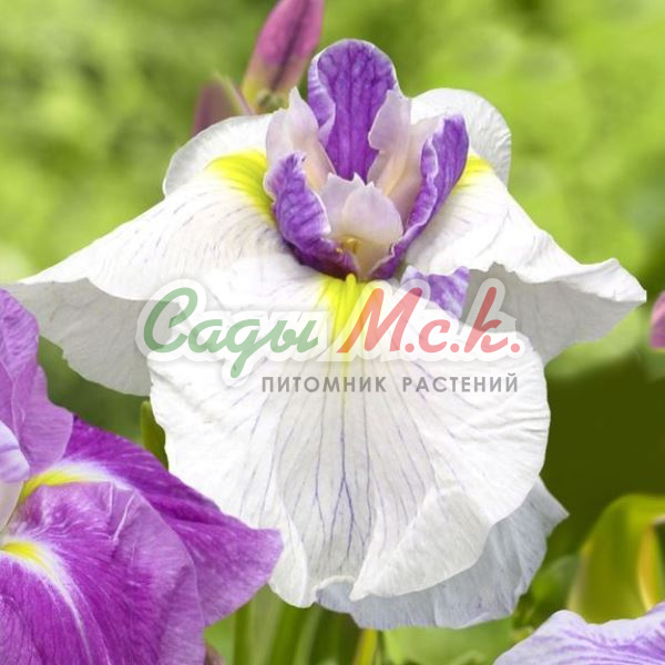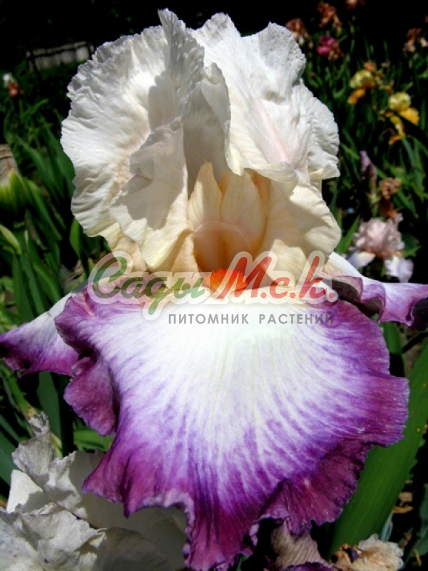 Рассада ириса Acoma относится к высоким бородатым ирисам, известным как пликата, т.е. в которых яркий рисунок располагается на более светлом фоне. Это однократно цветущий ирис, на каждом стебле которого развивается от 5 до 6 бутонов. Нижние доли (фолы) имеют светлый фон цвета слоновой кости и фиолетовые края, мягко переходящие друг в друга. Верхние доли (стандарты) – светло-светло-голубые, вертикально подняты вверх. Бородка – желтая, малозаметная. Верхние и нижние доли слегка гофрированные. Цветение среднее.
