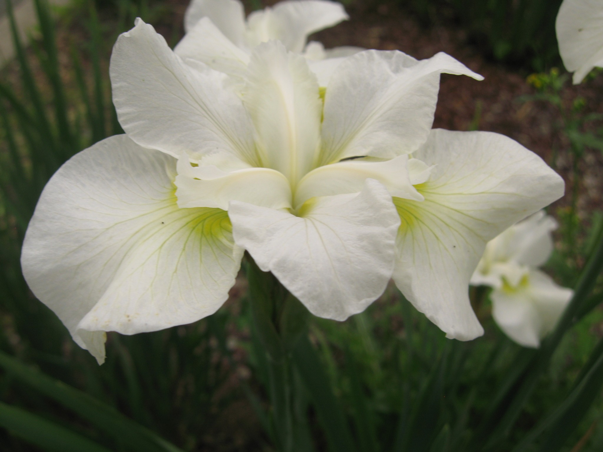Ирис сибирский Шартрез Баунти Chartreuse Bounty прекрасно подойдет для любой клумбы возле дома. Это достаточно высокое многолетнее растение (до 70 см). Период его максимального цветения – это май-июнь. Цветки этого сорта ириса двухцветные: верхняя часть лепестков белого цвета, а нижняя часть светло-желтого цвета. Также у основания лепестка можно заметить зеленые пятна.