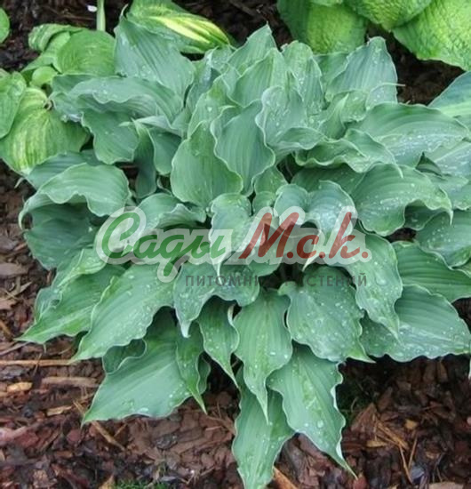 Хоста Big Dаddу – крупное, мощное растение с очень выразительной окраской. Это один из лучших «синелистных» сортов с крупными, чашеобразной формы, плотными листовыми пластинами, имеющими вафельную фактуру. Для многолетника характерен насыщенно-голубой цвет с матовым налетом, который в конце лета изменяется и становится практически зеленым. В июле над кустом появляются длинные цветоносы, достигающие 70 см высотой, на которых распускаются белые цветы-колокольчики, имеющие легкий лавандовый оттенок и едва уловимый аромат. Прекрасная «голубая» красавица разрастается очень медленно, особенно в молодом возрасте. Она предпочитает тенистые места, с удовольствием селится у водоемов или среди камней в альпинарии.