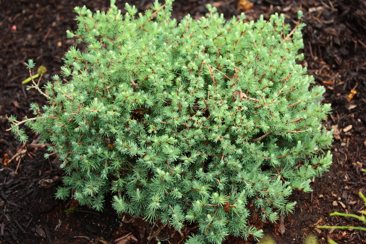 Лиственница американская Ньюпорт Бьюти Larix laricina Newport Beauty — медленно растущая, шаровидная лиственница с плотной, ветвистой кроной, карликовая декоративная форма, густо-шаровидная. Хвоя мягкая, голубовато-зеленого цвета, осенью приобретает яркий желто-оранжевый оттенок. На зиму хвоя полностью опадает. Хвоинки короткие, длиной 1 - 3 сантиметра, плотно прилегают к веткам на однолетних приростах.