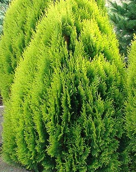 Туя западная Aurea Nana - очень красивое карликовое вечнозеленое деревце с хорошо выраженным главным стволом и большим числом боковых ветвей, форма кроны яйцевидная. Растет медленно. Молодые однолетние и двухлетние побеги плоские, зеленые, расположены двухрядно. На третий год они становятся круглыми, коричневыми. Побеги плотно расположенные. Размер после 10 лет достигает высоты 0,7м. Хвоя чешуевидная, желто-зеленая, широкоромбическая, плотно прижатая к стеблю.